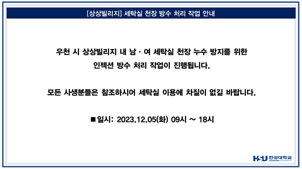 [상상빌리지] 세탁실 천장 방수 처리 작업 안내