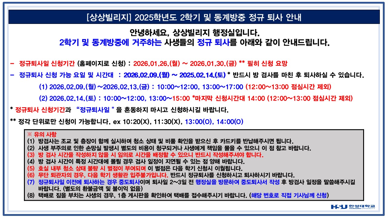 [상상빌리지] 2025학년도 2학기 및 동계방중 정규퇴사 안내